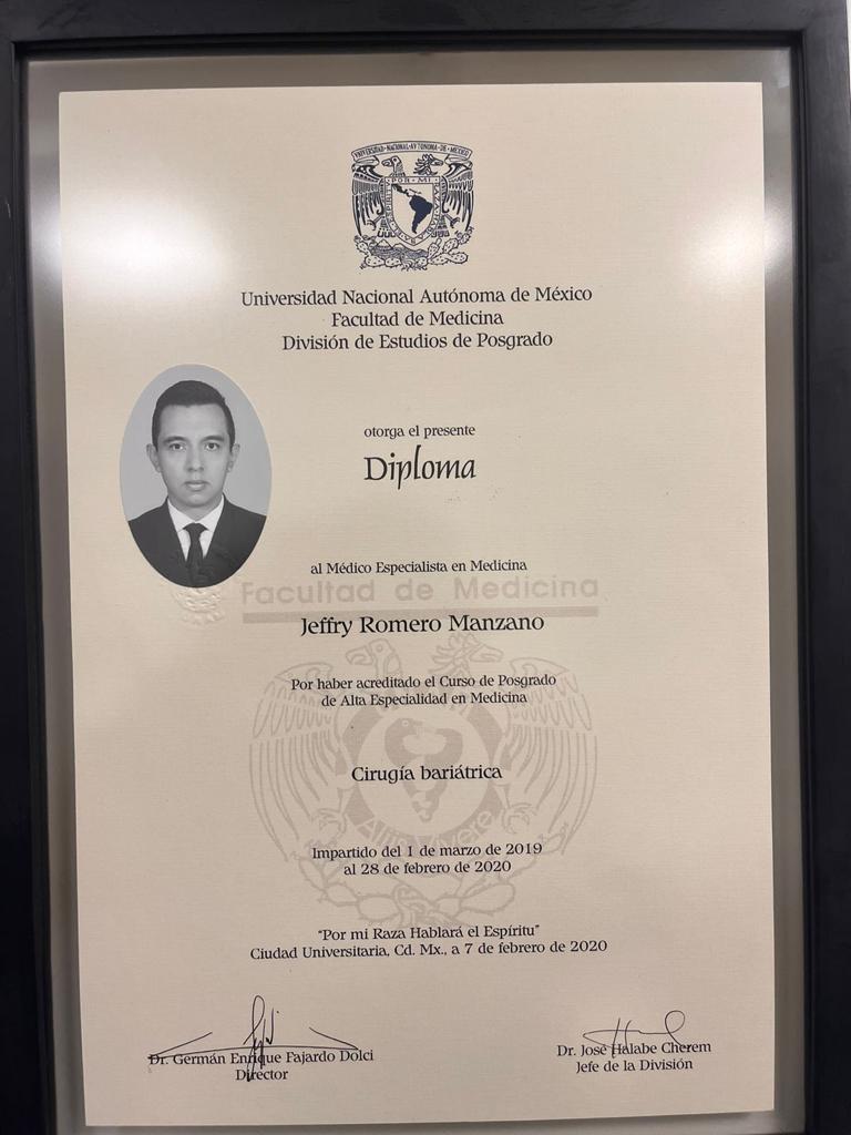 Dr. Jeffry also underwent bariatric surgery himself, for this reason he will not only be able to provide you recommendations not only as a surgeon, but also as a patient; making this journey easier for you. He currently works as a teacher in the formation of new bariatric surgeons at the Fengh Academy of Minimally Invasive Surgery (FAMIS), providing his experiences and knowledge to professionals from Mexico and Latin America.