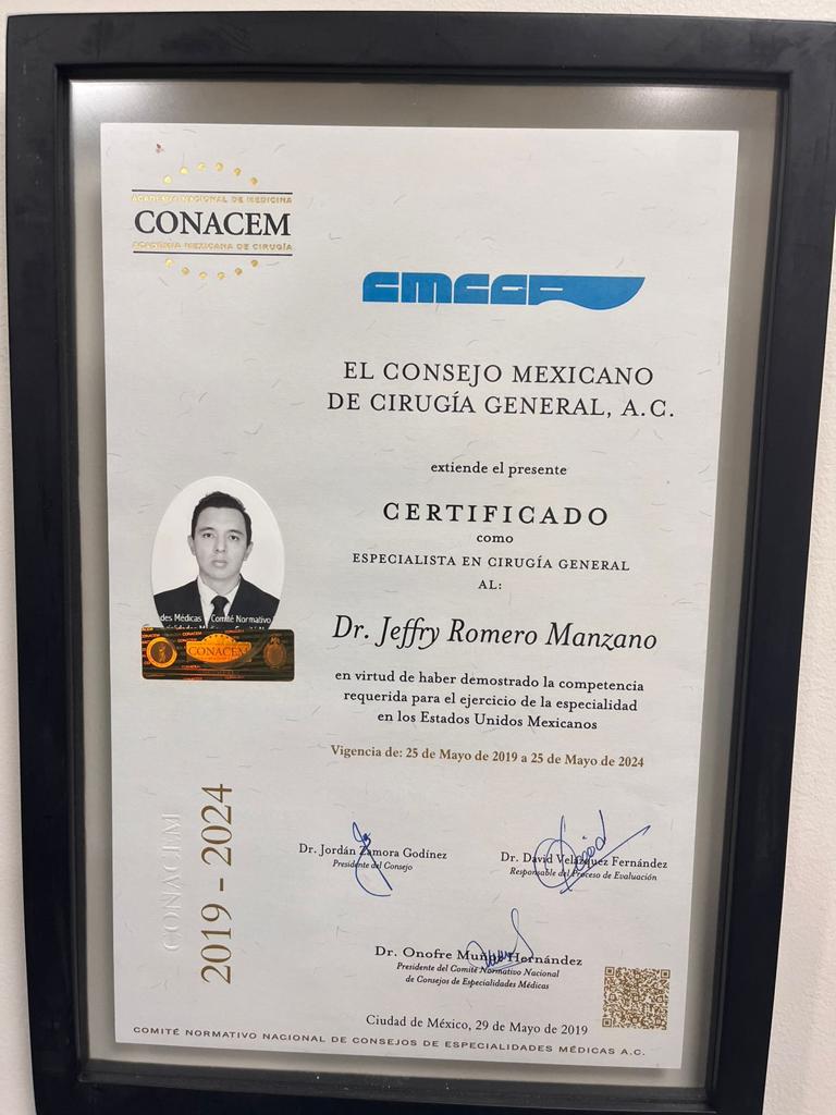 - Certification: -Mexican Council of Surgery Gral. A.C. (2019-2024)